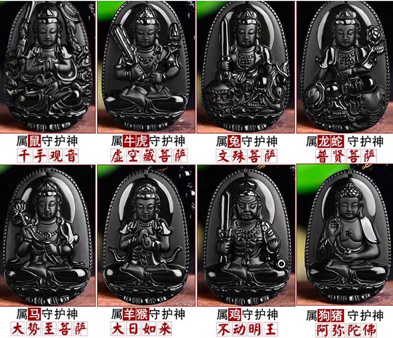 (已開光加持)(屬鼠)(千手觀音) 高質黑曜石吊墜 (No.BOP001)
