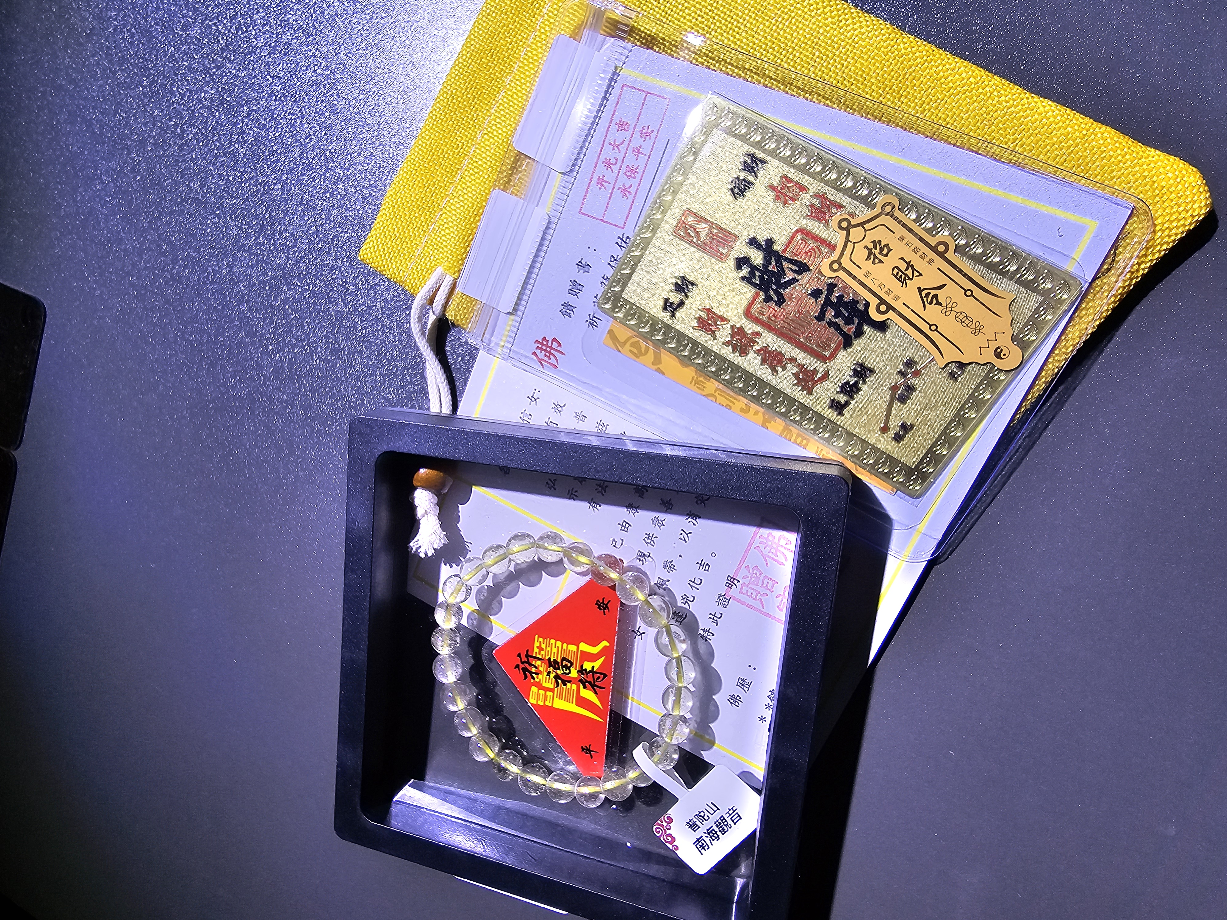✅️ 手串包含獨有的平安符,進階款開光金咭和証書一張