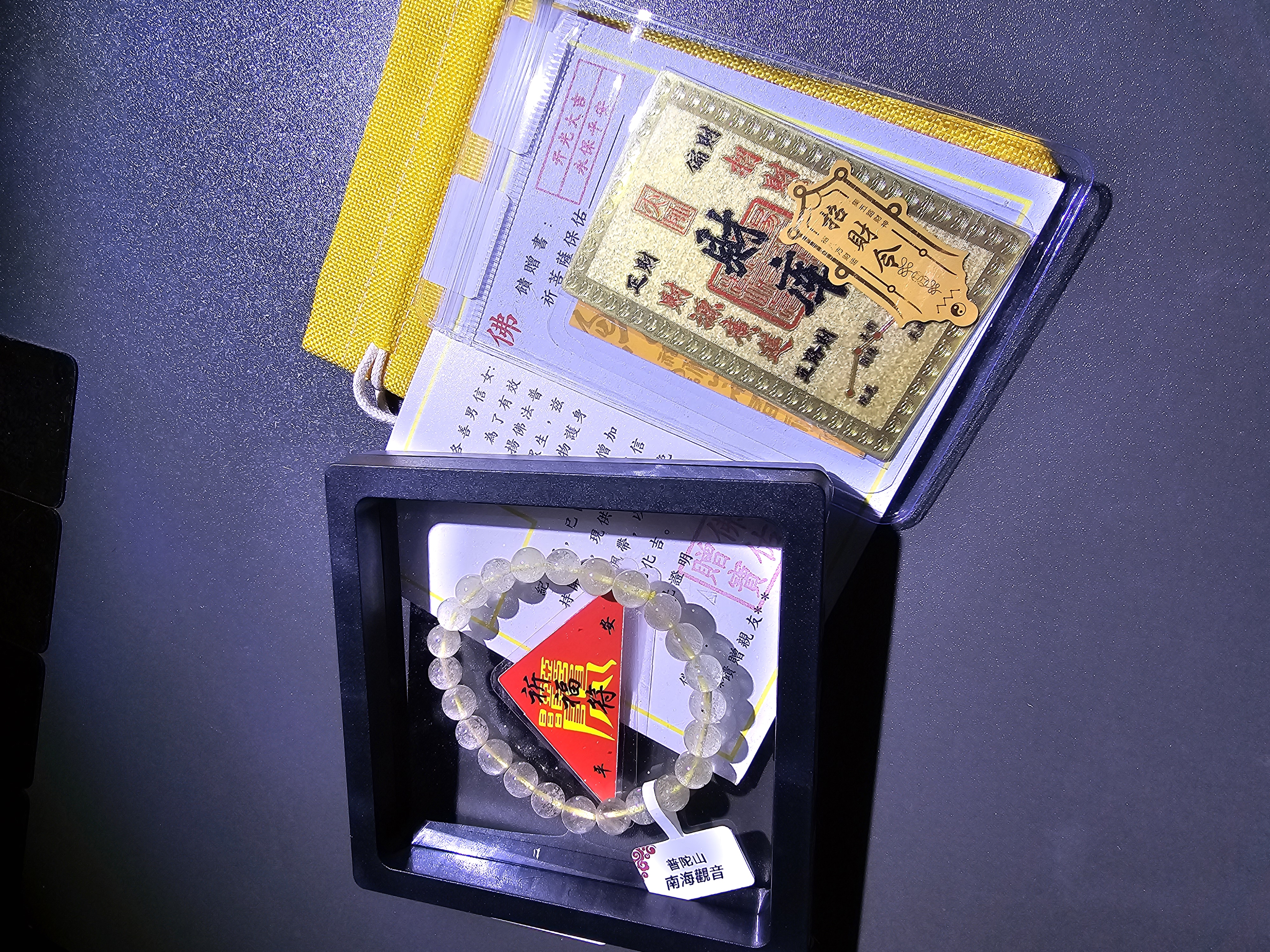 ✅️ 手串包含獨有的平安符,進階款開光金咭和証書一張